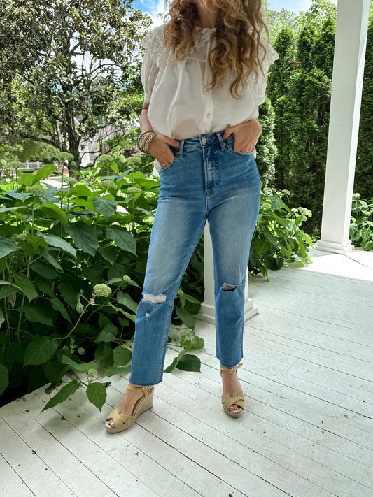 High Rise Ripped Straight Jean
