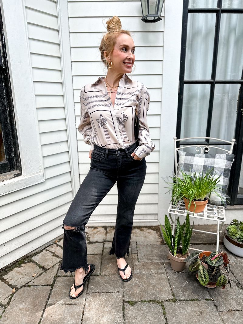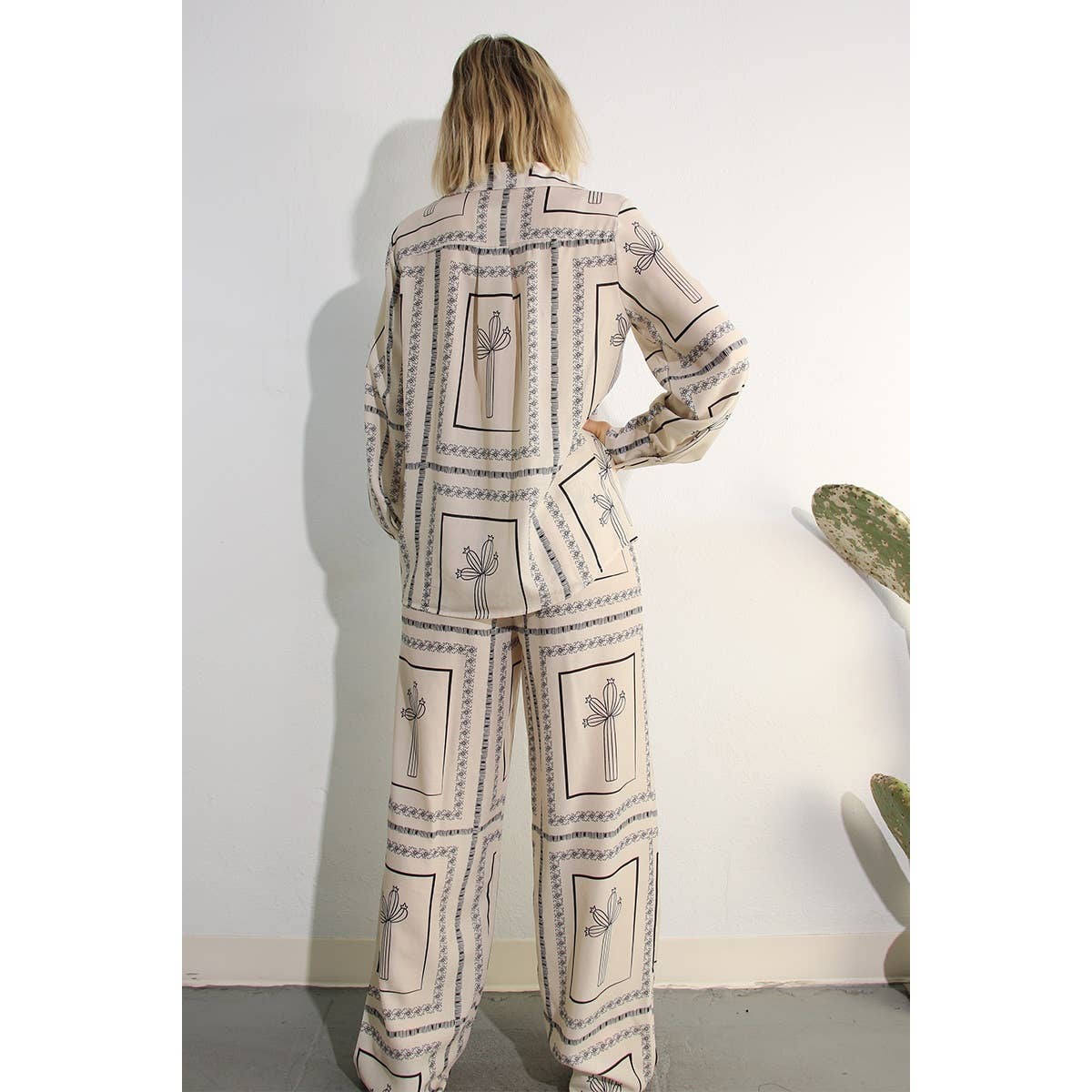 Meet our button-down Cactus Shirt. The cactus print is so fun for every day. Light weight and airy fabric for transiting to the warmer days of Spring. Pair it with our matching cactus pants or dress it down with several of our amazing jeans or cut off shorts.