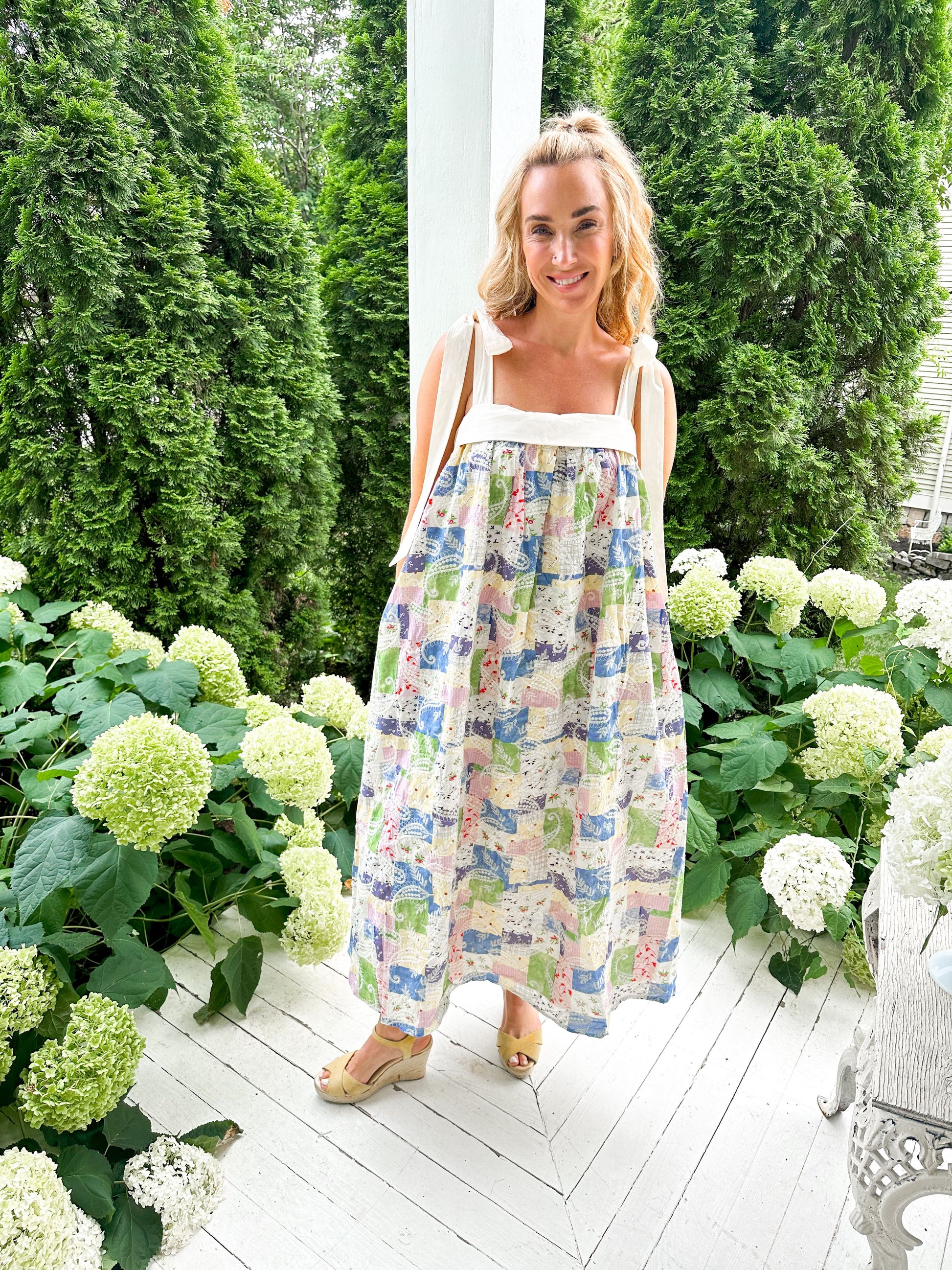 This is the cutest Patchwork Perfection Midi. The perfect summer dress that is light weight but fully lined. Tie straps make it easily adjustable to fit most body types.