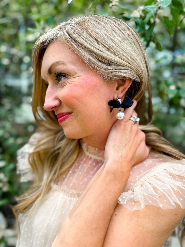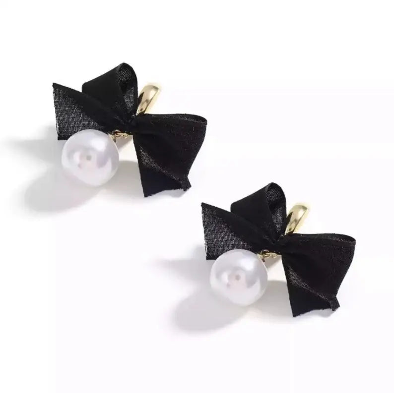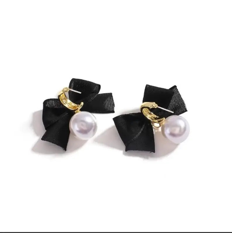 When your outfit needs the perfect finishing touch: Our super cute Bow Pearl Earrings are perfect to add a little glamour to your everyday look. These earrings are made from a genuine organza satin stacked below an acrylic pearl . Measures 1 1/2" by 2". Surgical steel post.