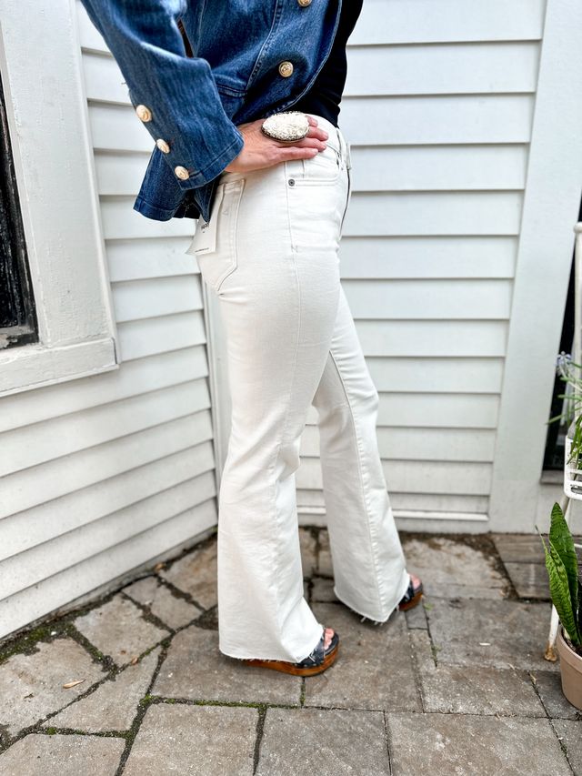 Elevate your denim game with our High Rise Zip Fly Flare Leg Jeans. Crafted from a blend of 65% cotton, 21% rayon, 11% polyester, and 2% spandex, these jeans offer a comfortable stretch and a flattering fit. With an 11-inch rise and a 27-inch inseam, they're designed to accentuate your silhouette. Complete with an 18-inch opening, these jeans are perfect for pairing with your favorite tops for a stylish look. Jean opening is a raw edge that you can easily cut if you need them to be shorter.