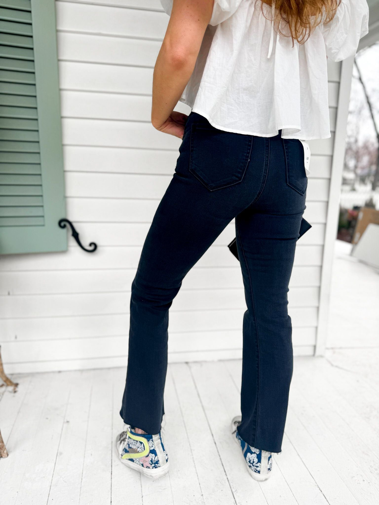 Elevate your denim game with our High Rise Button Fly Crop Flare Jeans. Crafted from a blend of 65% cotton, 21% rayon, 11% polyester, and 2% spandex, these jeans offer a comfortable stretch and a flattering fit. With an 11-inch rise and a 27-inch inseam, they're designed to accentuate your silhouette. Complete with an 18-inch opening, these jeans are perfect for pairing with your favorite tops for a stylish look.