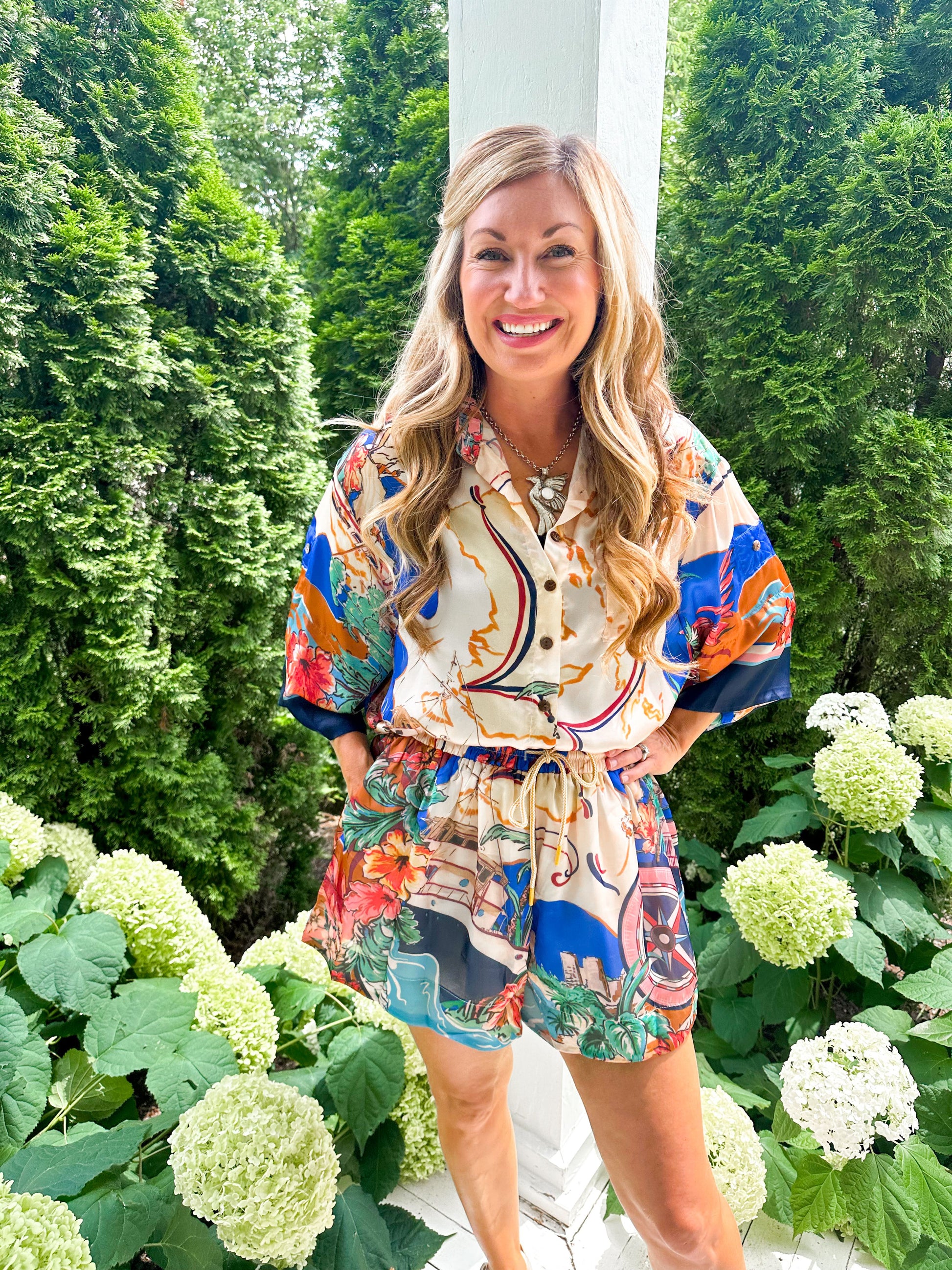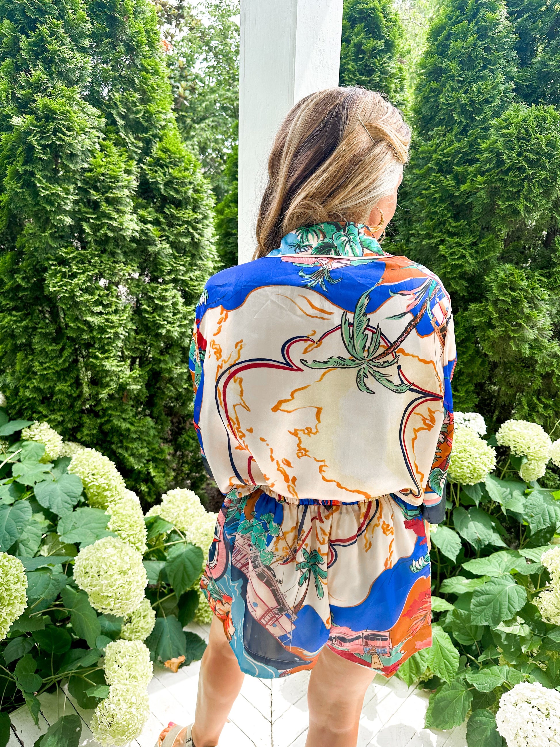 Going somewhere fun this summer? Don't forget to pack our super lightweight and airy Saint Tropez set. Easy to slip on after a day in the sun as you lounge pool side but dressy enough to wear to dinner. The fabric is so smooth and cool. Full button front shirt with left chest pocket and button tab roll up sleeves.
