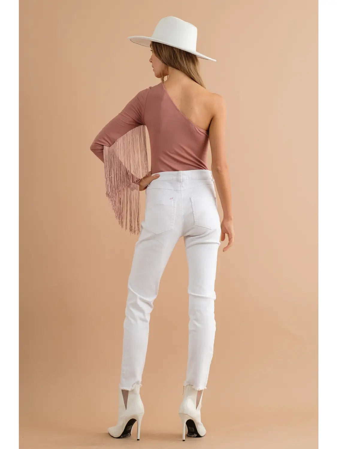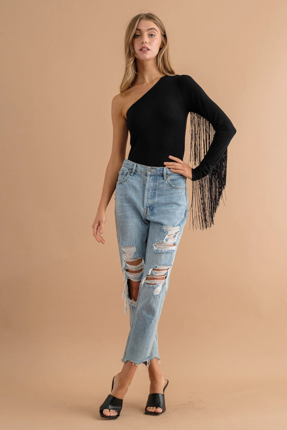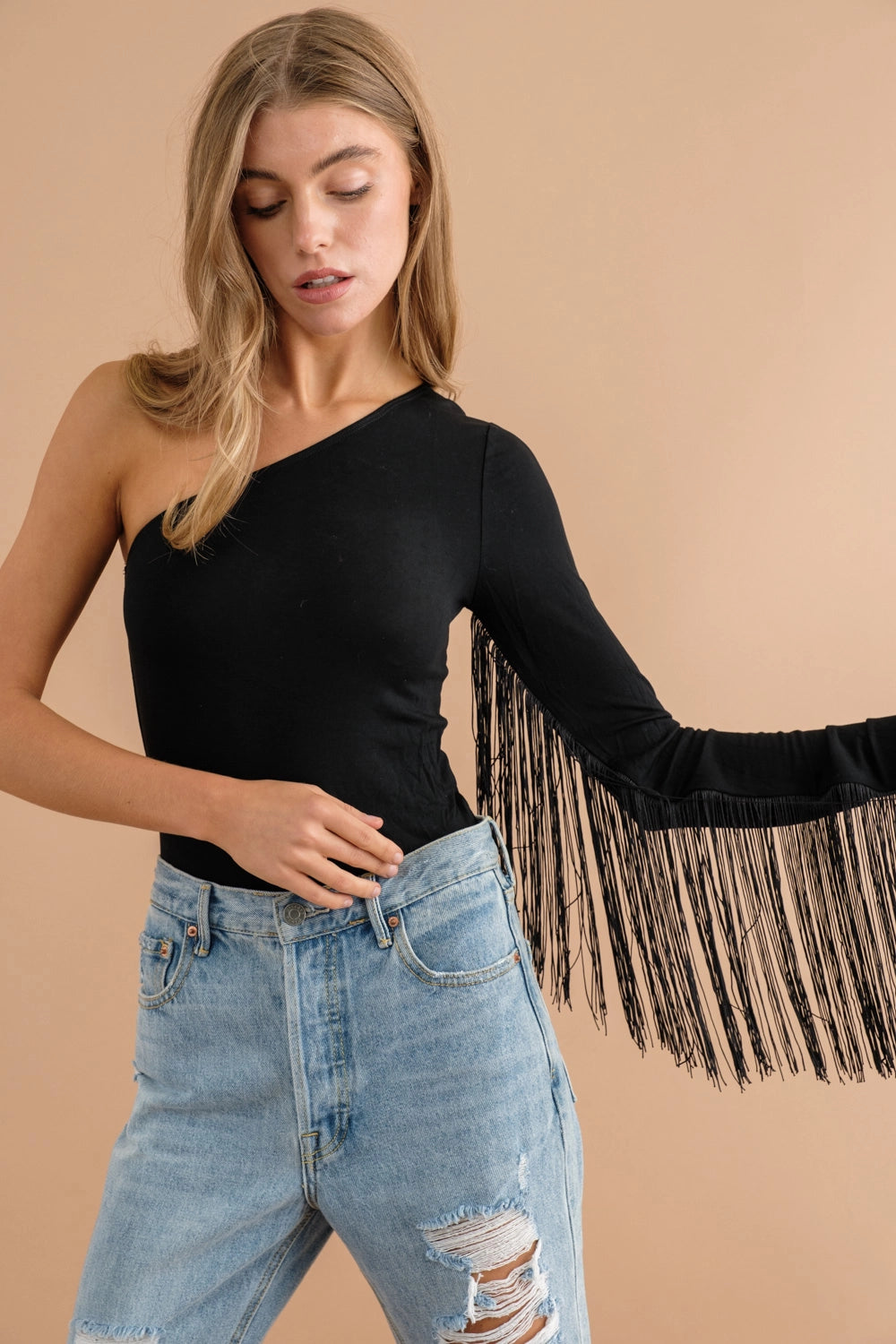 Introducing our Rayon Span One Shoulder Fringe Bodysuit, a must-have for the fashion-forward! Crafted from a luxurious blend of 93% Rayon and 7% Spandex, this bodysuit offers the perfect balance of comfort and stretch. The one-shoulder design adds a touch of sophistication, while the fringe detail elevates your style with a playful edge. Whether you're hitting the town or stepping into a special occasion, this bodysuit promises a flawless fit and a statement-making look. Embrace the versatility of this piece and make it the star of your wardrobe.
